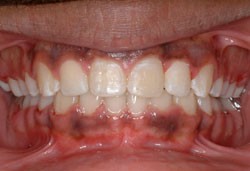 ![]() Deep overbite with spacing | ![]() Opening the deep overbite prevents wearing of the incisal edges. |